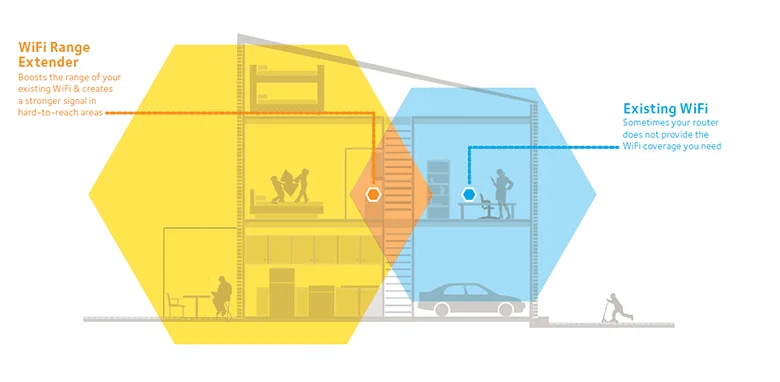 A range extender complements your current router to extend the Wi-Fi coverage further. Some advantages are:
